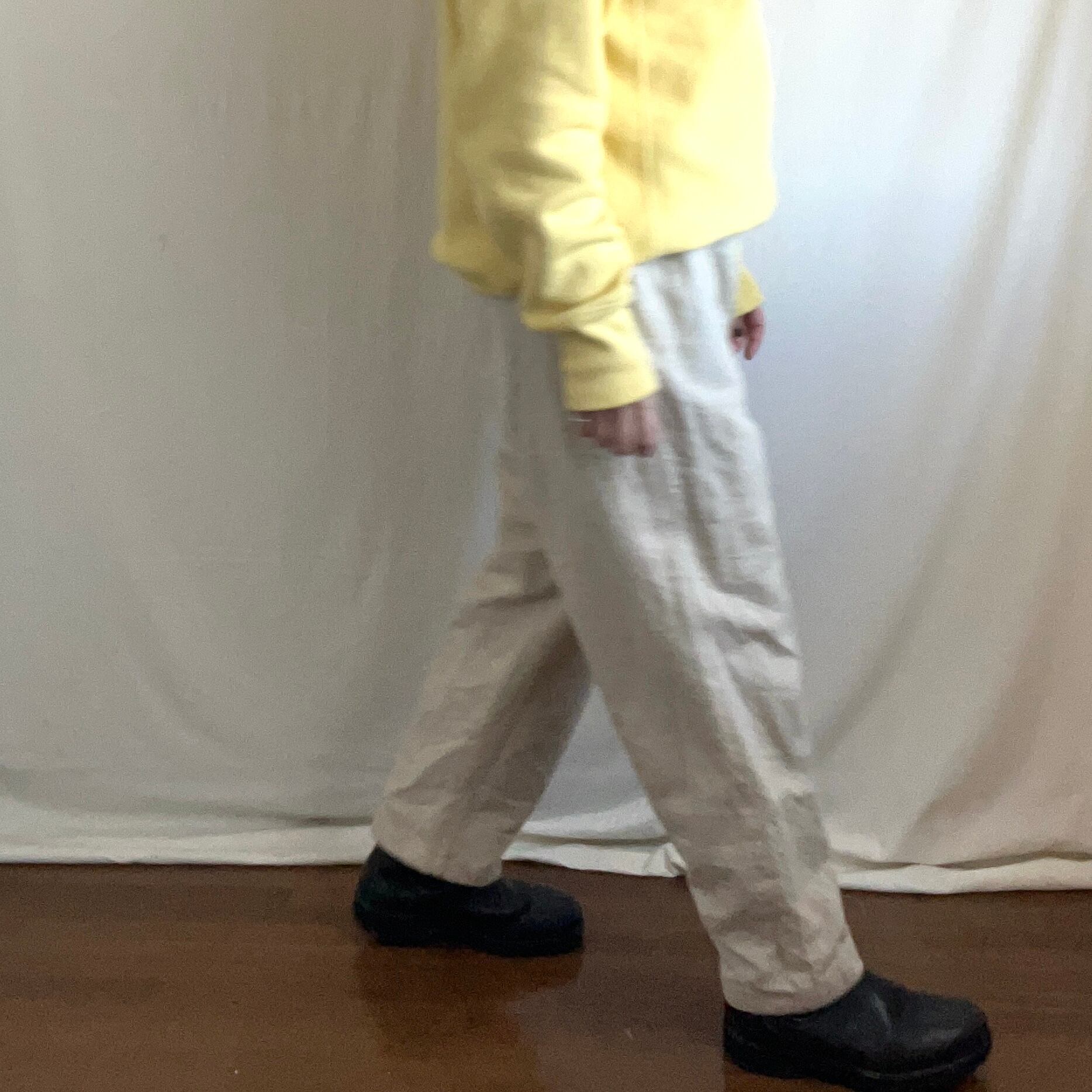 裾に向かって細いシルエットのパンツです